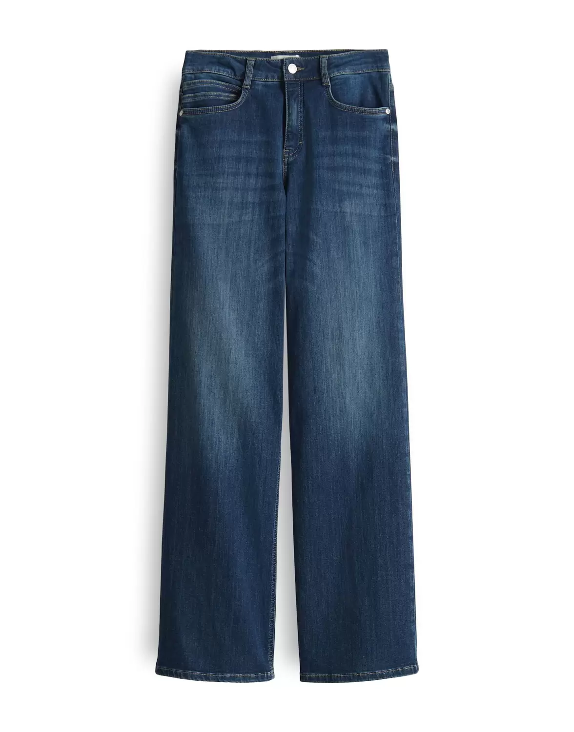 Die Wide Leg Jeans ist ein echter Trendartikel: Authentischer Blue-Denim mit Used-Waschung, 5-Pocket-Stil und weitem, geraden Beinverlauf – modern und vielseitig kombinierbar.